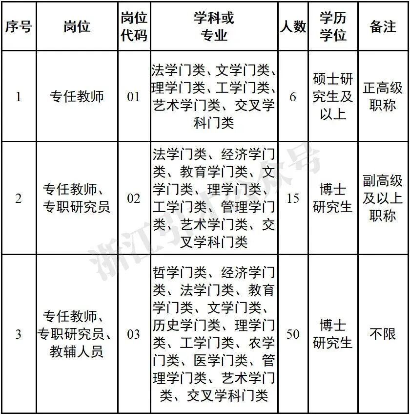 为引进高素质人才,加强人才队伍建设,根据国家及浙江省事业单位公开招聘有关政策规定,丽水学院面向海内外公开招聘事业编制高层次人才(专业技术人员)71名。现将具体事宜公告如下: