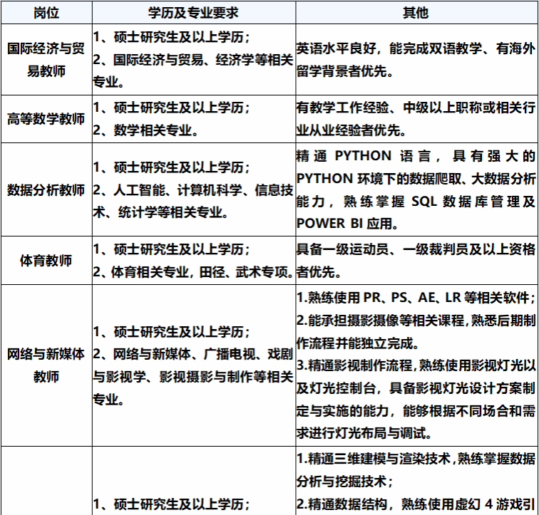 1、 热爱高等教育事业,具有良好的职业道德,品行端正,身心健康,能够胜任相应岗位工作;