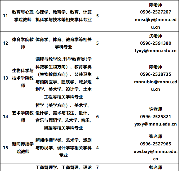地址:漳州市芗城区县前直街36号闽南师范大学教师工作部(人事处)