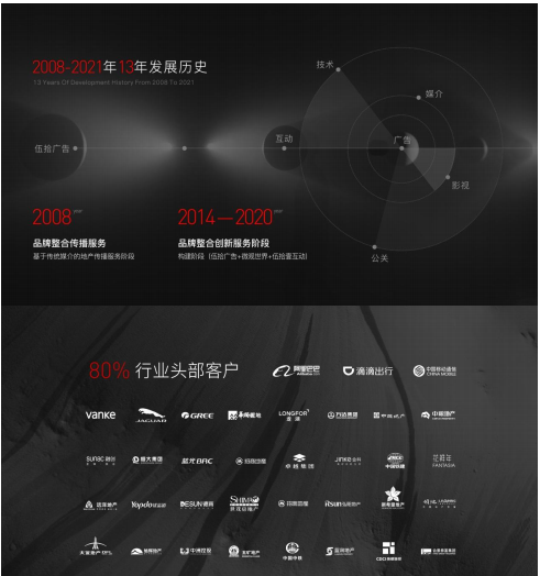 截止 2021 年,公司业务涵盖品牌整合营销、地产全案推广、前策咨询服务、创新型