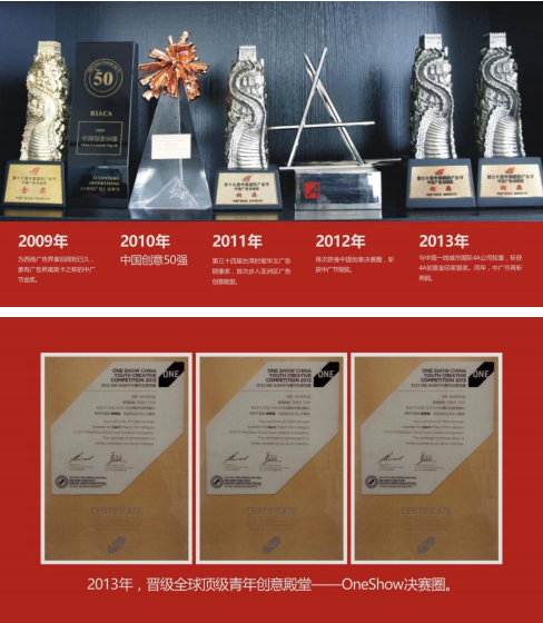 13 年以来,伍拾文化发展不断赢得国内外专业领域的肯定,陆续荣获中国广告节金奖