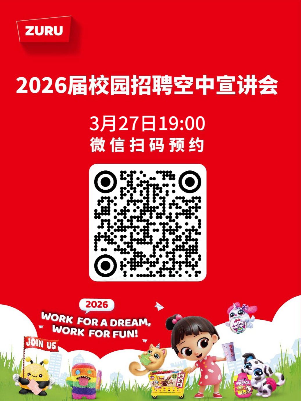 ZURU 2026届春招第一批简历收集即将截止!项目管理、采购、供应链、机械工程、商务运营、平面设计等不同方向岗位即将进入笔面试环节,快来锁定ZURU春招限定空中宣讲会,重点了解岗位信息以及ZURU的work & life!,离心仪offer更进一步!!!