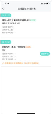 2、建议使用网络流量进行视频面试,部分wifi有延迟导致无法及时接通或接通后无页面。