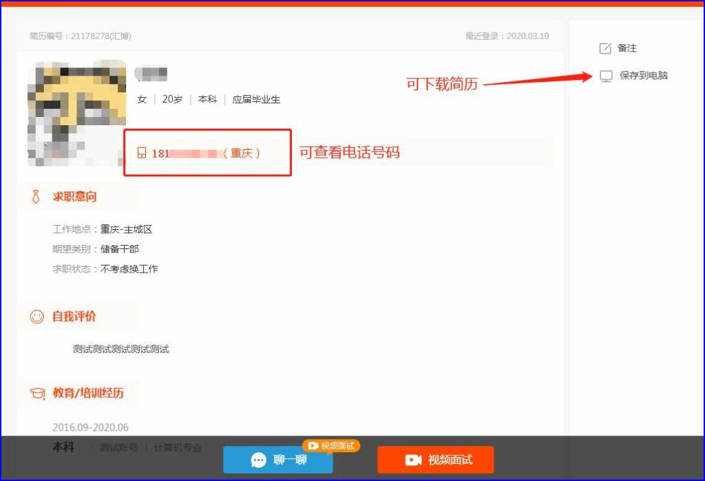 手机面试:需提前准备好电脑,下载登录“汇博招聘APP”,选择企业登录入口登录根据新手教程引导操作;