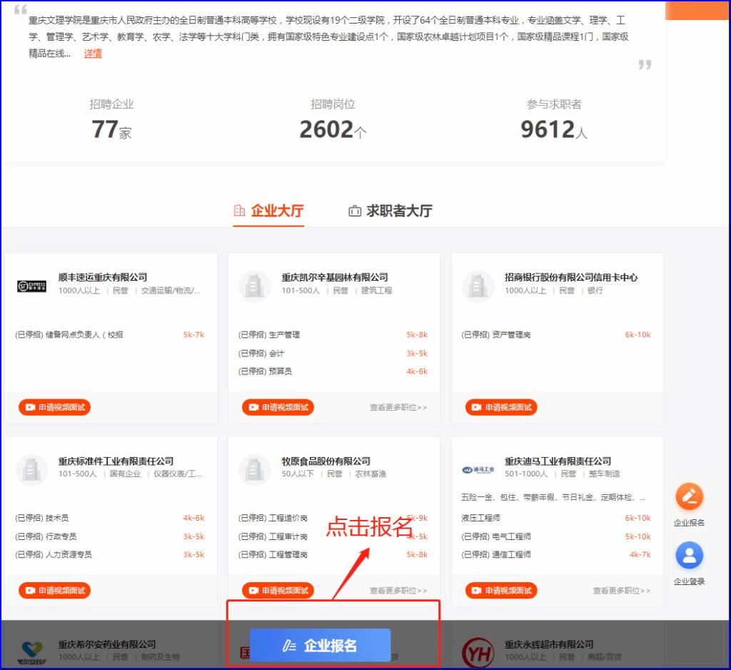 2、点击进入对应场次后,点击下方求职者报名,并根据要求填写报名信息。