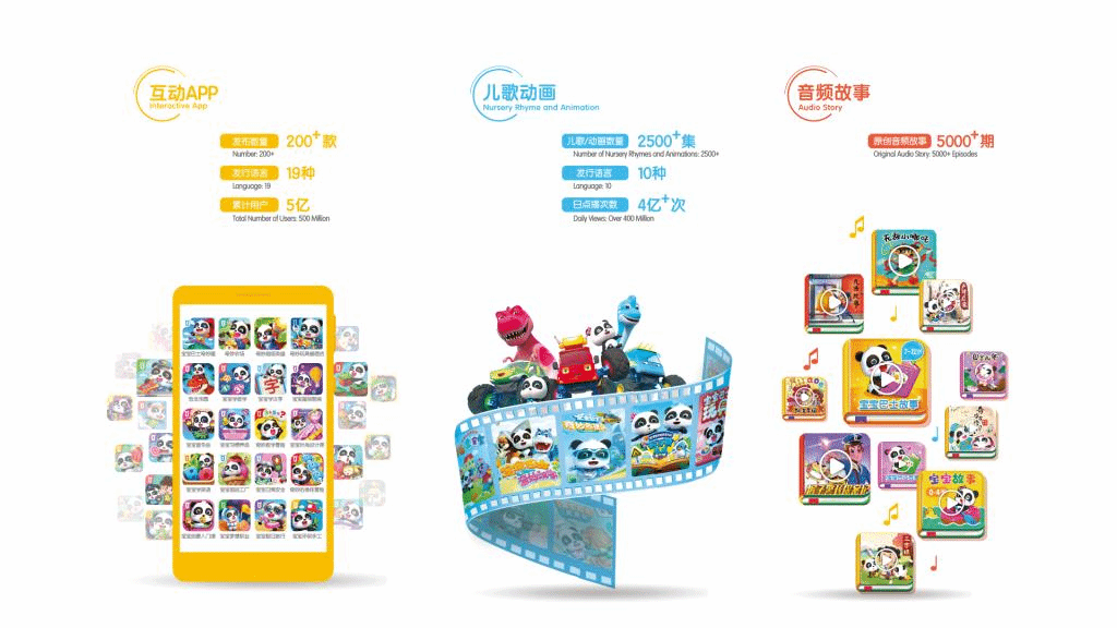 200+款互动App、2500+集儿歌动画、5000+期国学故事;