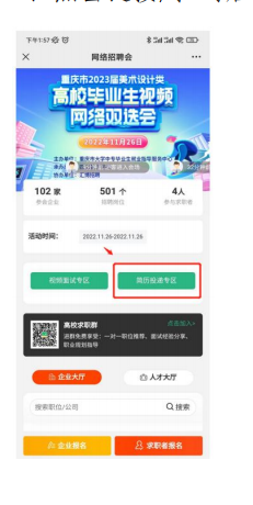 简历投递专区:活动期间,求职者会向有意向的企业投递简历。(具体操作请看简历投递操作流程)