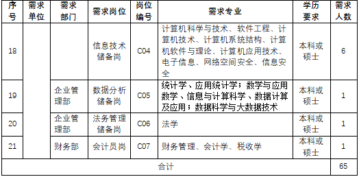 (一)需求单位、岗位、专业、学历和数量