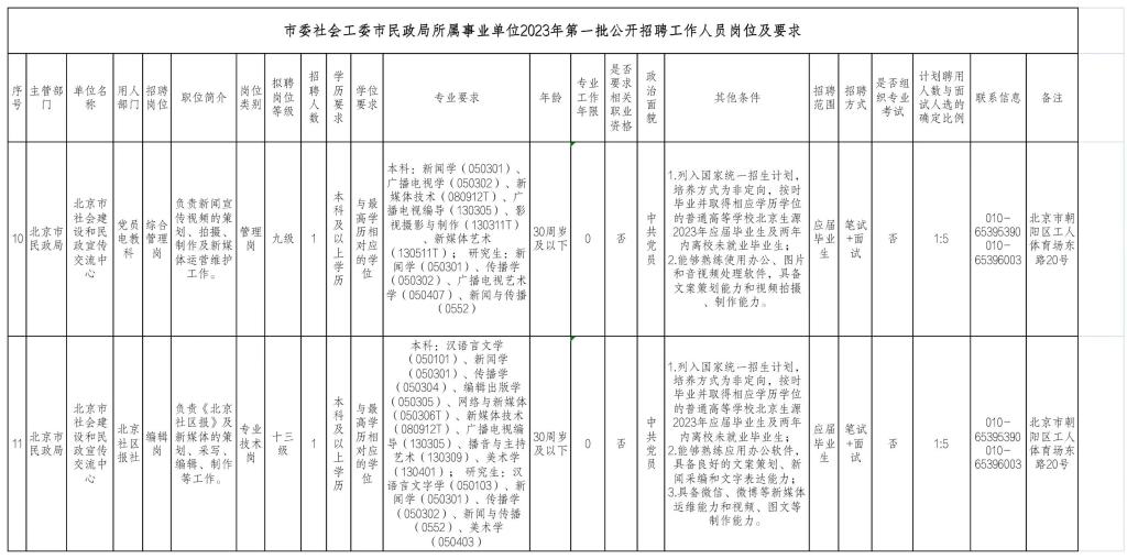1.市委社会工委市民政局所属事业单位2023年第一批公开招聘工作人员岗位及要求