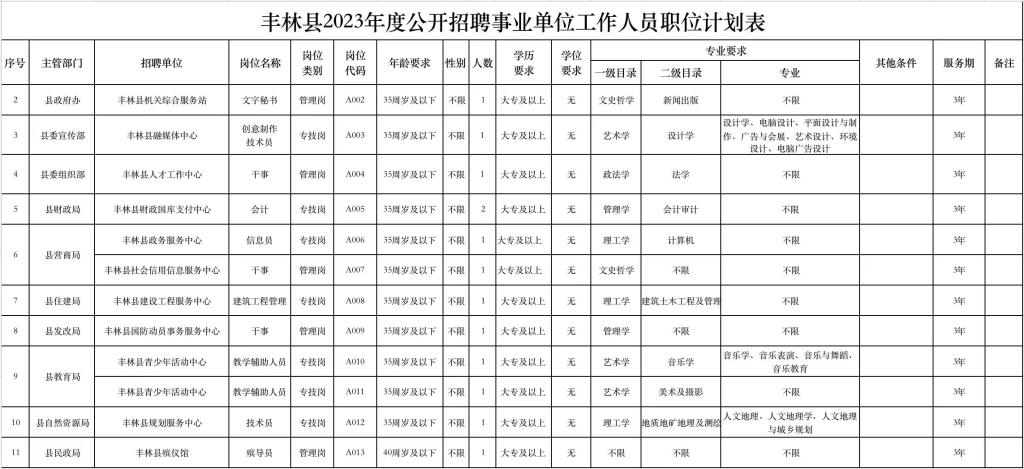 4.报名地点:丰林县人社局一楼大厅事业股。