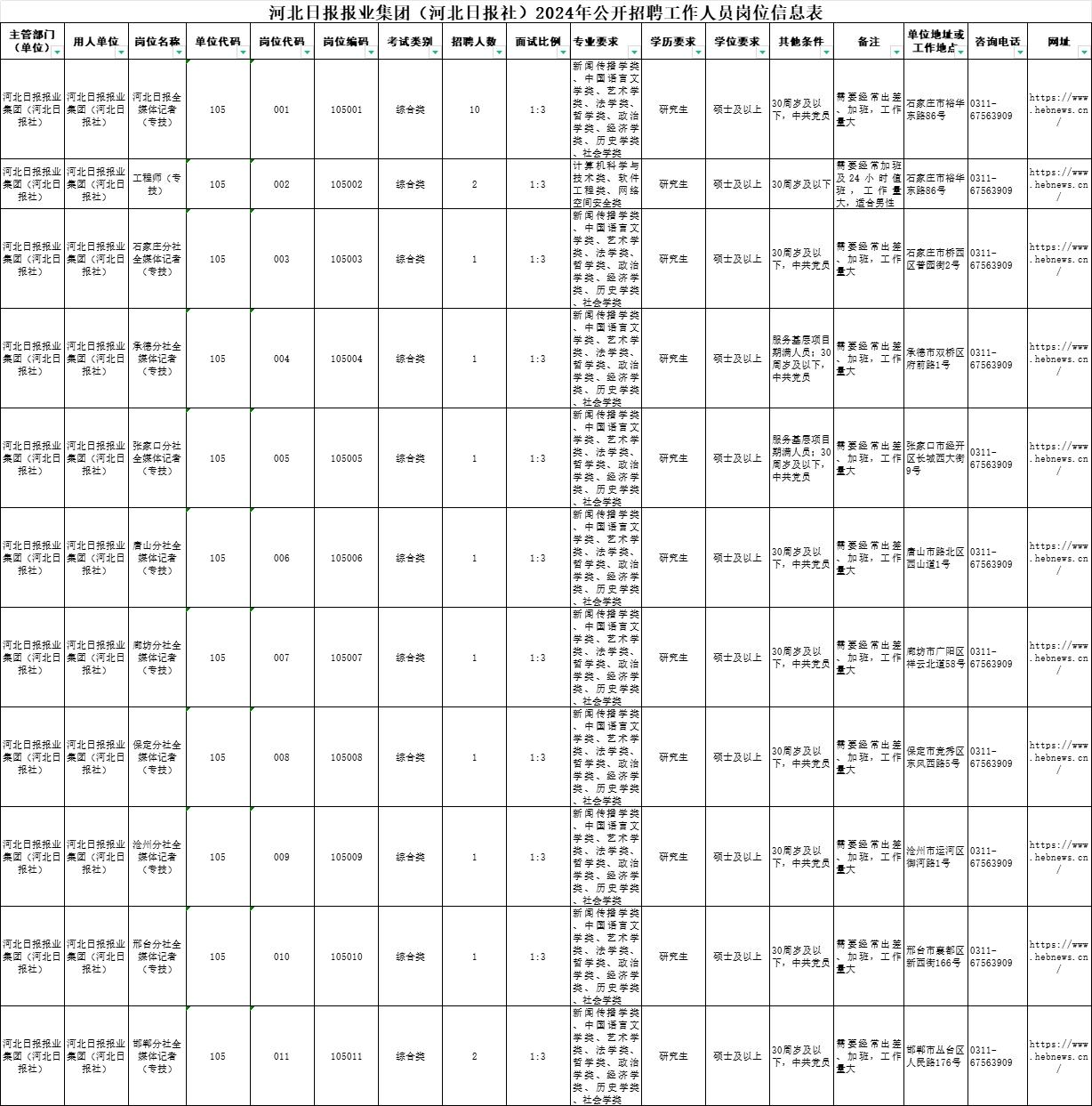 政策咨询电话:0311-67563909(河北日报报业集团人力资源部)