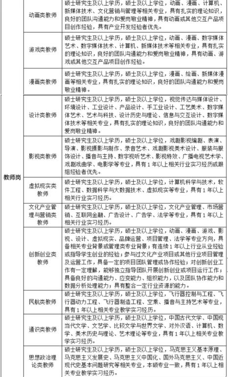 动漫游、设计、影视、虚拟现实与人工智能、文商管理与品牌营销、民用航空、通识教育。