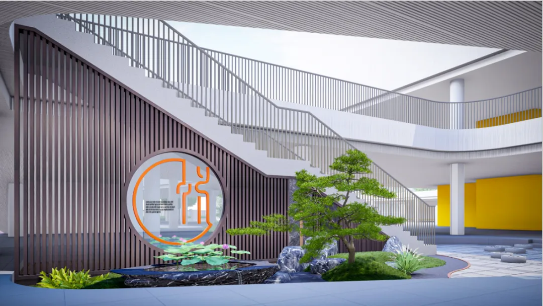 学校整体建筑造型简洁而富有现代气息,白绿相间的色调搭配,清新雅致,宁静中充满着生命的张力。整个空间分区合理,舒适教学区、安静办公区、活力运动区、实践劳动区等能同时满足学生多样发展的灵动空间需求。各功能空间通过“三苑一厅,三庭一廊”相互连接,既独立又相映成景,和谐中透着自然愉悦的气息。