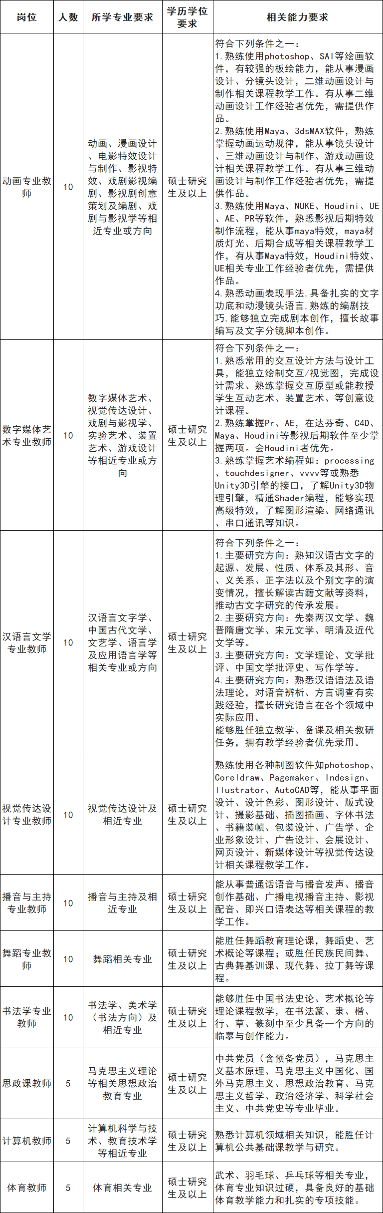 根据学校事业发展需要,拟招聘以下相关专业教师。具体招聘岗位及要求如下: