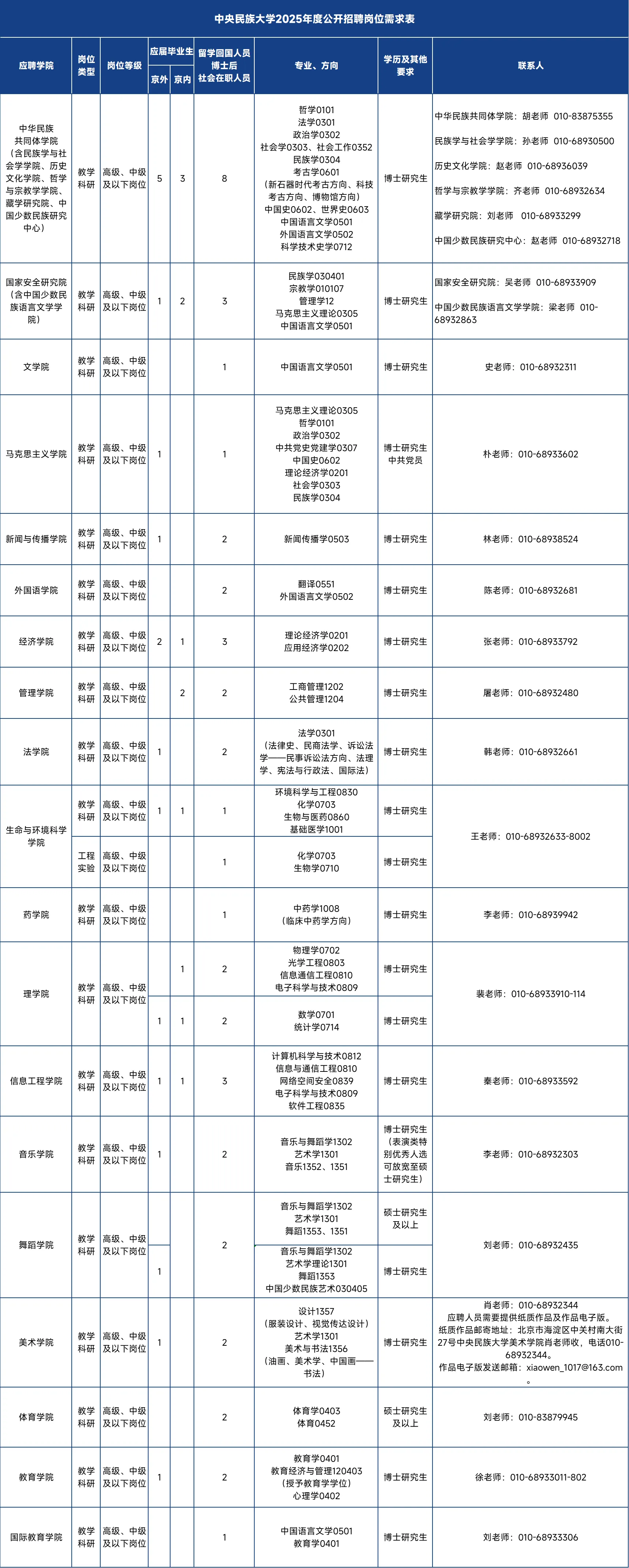 为打造素质精良、结构合理的人才队伍,建设人才聚集、创新开放的学术高地,我们诚邀广大优秀青年人才加盟,共创中央民族大学美好未来!