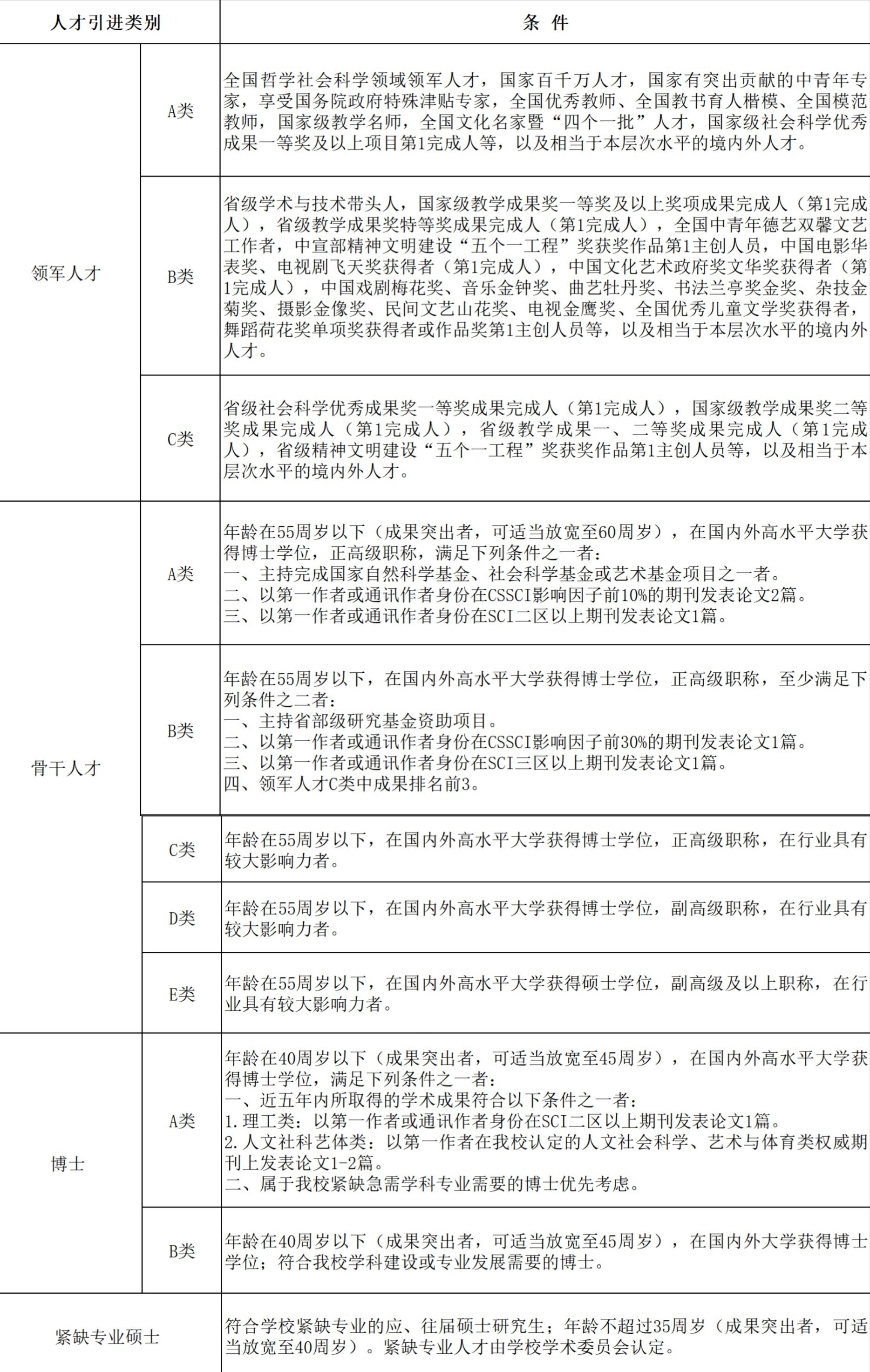 (一)引进人才为处于专业前沿并且在国内外相关领域具有较高影响的领军人才,能够推动学校事业发展的学科带头人、 学术骨干以及各学科建设和专业发展所需的优秀博士。