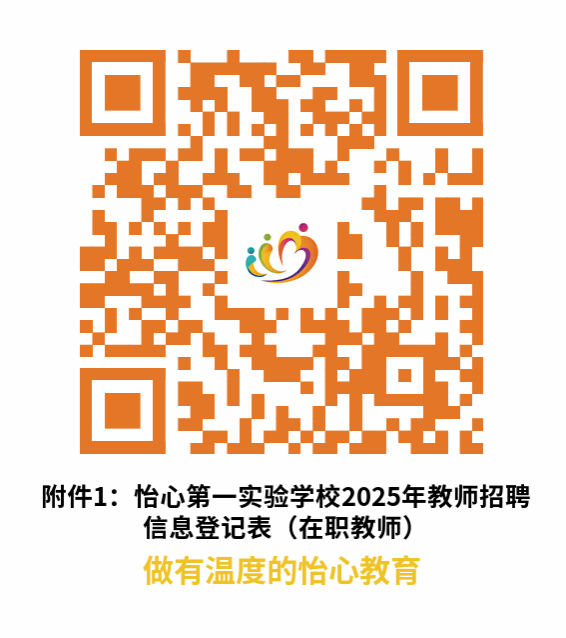 ◇请扫描二维码下载《附件1:教师招聘信息登记表(在职教师)》,填写并发送至指定邮箱。