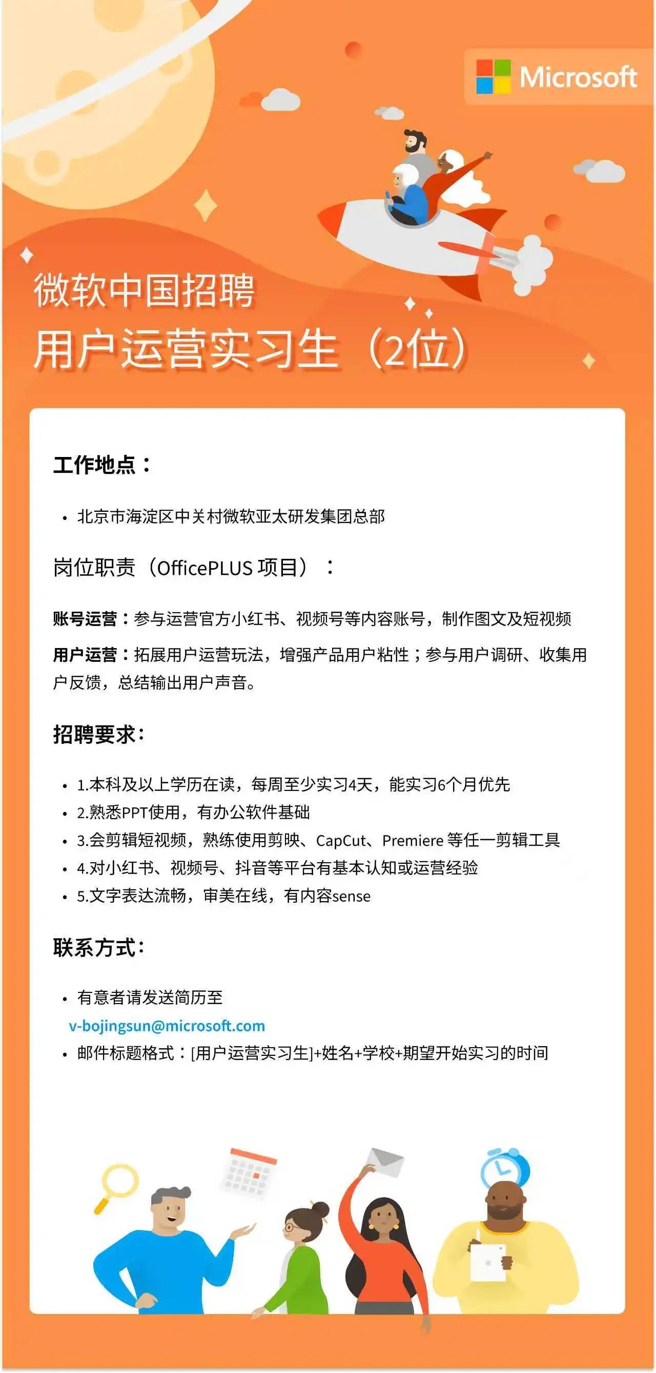微软(中国)有限公司招聘用户运营实习生