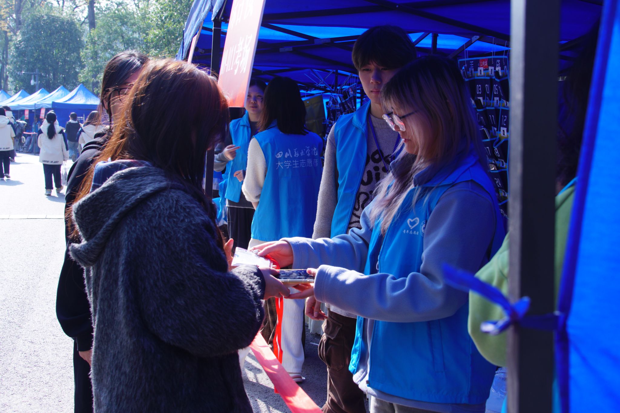 11月30日至12月1日,校青协组织志愿者为重庆市2025年艺术类专业统考四川美术学院虎溪校区提供电子产品集中存取的志愿服务工作。
