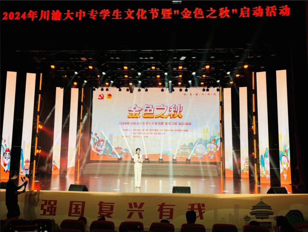 9月28日,由重庆市委教育工委、重庆市教委、共青团重庆市委、共青团四川省委、重庆市学联、四川省学联、重庆理工大学联合主办的2024年川渝大中专学生文化节暨“金色之秋”启动活动在重庆理工大学举行。川渝大中专院校团委负责同志、师生代表,以及中小学生代表等,共计1200余人现场参加活动。我校水彩社和第四期“青马工程”学员分别参加本次社团嘉年华展示交流活动和“双城青才讲堂”活动。