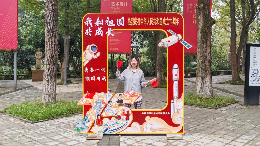 国庆前夕,我校积极营造浓厚庆祝氛围,在学习生活区域设置“我和祖国共成长”打卡地标,动员学生广泛参与,用照片记录青春风采。国庆期间,我校大学生艺术团组织同学们利用返家乡、游历祖国大好河山的时机,云端接力同唱一首歌,用青春之声赞美祖国山河,抒发爱国情怀。同学们还录制了祝福视频应邀推送至微博“中国大学生在线”,以川美青年之朝气、川美青年之心声表达对祖国的美好祝愿。此外,我校启动征集爱国故事展示活动,运用“乐活川美”微信公众号平台投稿发布,同学们结合自身经历围绕“我心中的中国”“长大后我就成了你”等内容,讲述个人与祖国同向而行的青春奋斗故事。