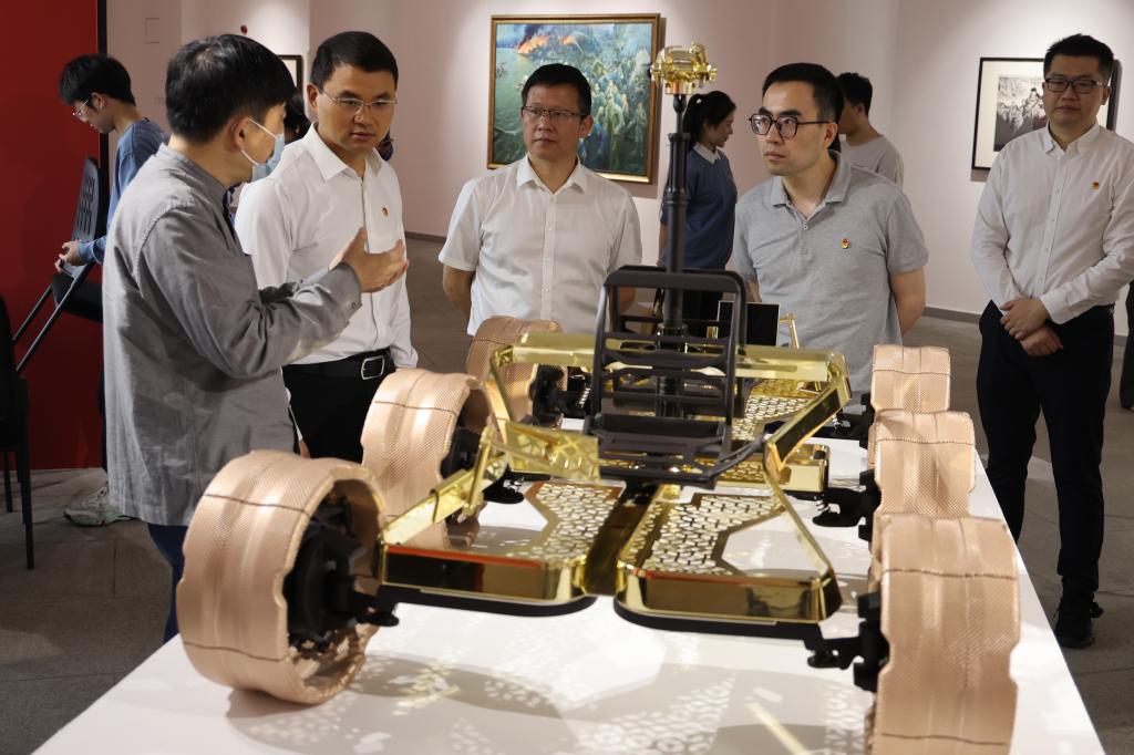 学校2022-2023学期“青马班”学员、建筑与环境艺术学院学生会韩平同学讲道:“本次主题团日,展示了我校师生在重大庆典、疫情防控、航天设计、乡村振兴等方向进行的主题创作。今天面对面地聆听创作团队成员的现场讲解,不仅使我们更好地了解学校近几年取得的突出创作成就,也为我们找到了自己学习的榜样。大学生绝不应仅待在象牙塔里闭门造车,更应当走进社会,走进人民。我们应当积极关注国家与社会发展,既关心高新技术产业,关心大国重器,又要关注乡村建设,努力宣扬本土文化,中国文化,创作出展现中国特色,时代特色的优秀艺术作品!”