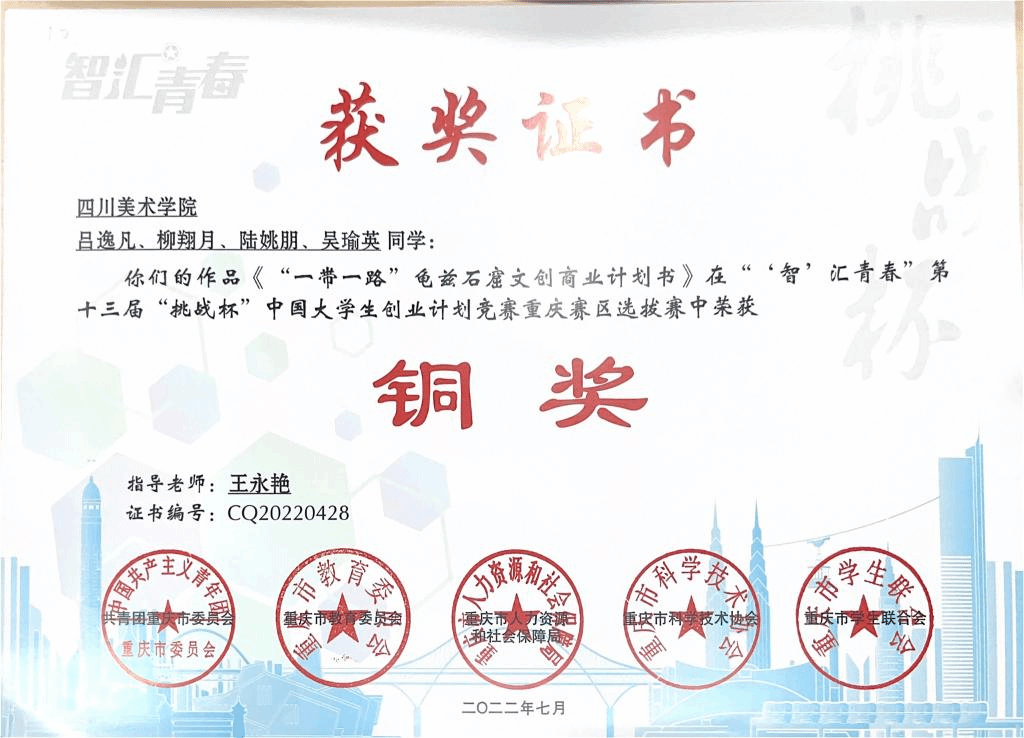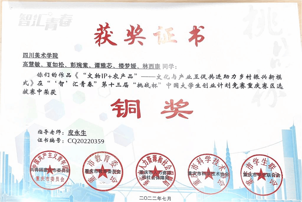 近日,共青团重庆市委发布《关于“‘智’汇青春”第十三届“挑战杯”中国大学生创业计划竞赛重庆赛区选拔赛获奖情况的通报》,我校参赛作品荣获金奖1项、银奖5项、铜奖3项,杨洋、袁曼玲、彭旭东、雷讯、魏正强5位老师获评“优秀指导教师”称号。