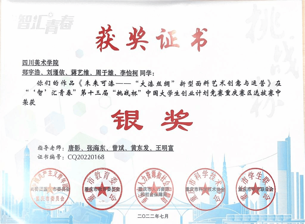 | 项目名称:《未来可漆——“大漆丝绸”新型面料艺术创意与运营》