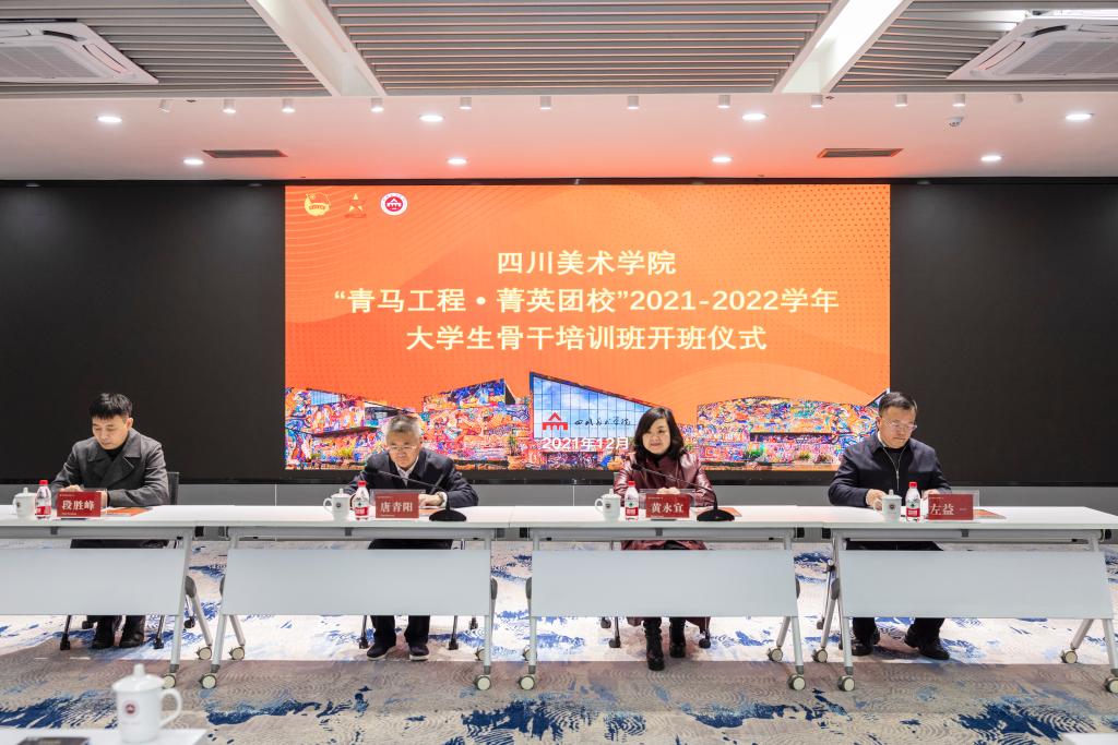 12月1日下午,学校“青马工程-菁英团校”2021-2022学年大学生骨干培训班开班仪式在行政楼五会议室举行。团市委副书记黄永宜、学校党委书记唐青阳、党委副书记左益、副校长段胜峰出席,仪式由学校团委书记吴倩主持。