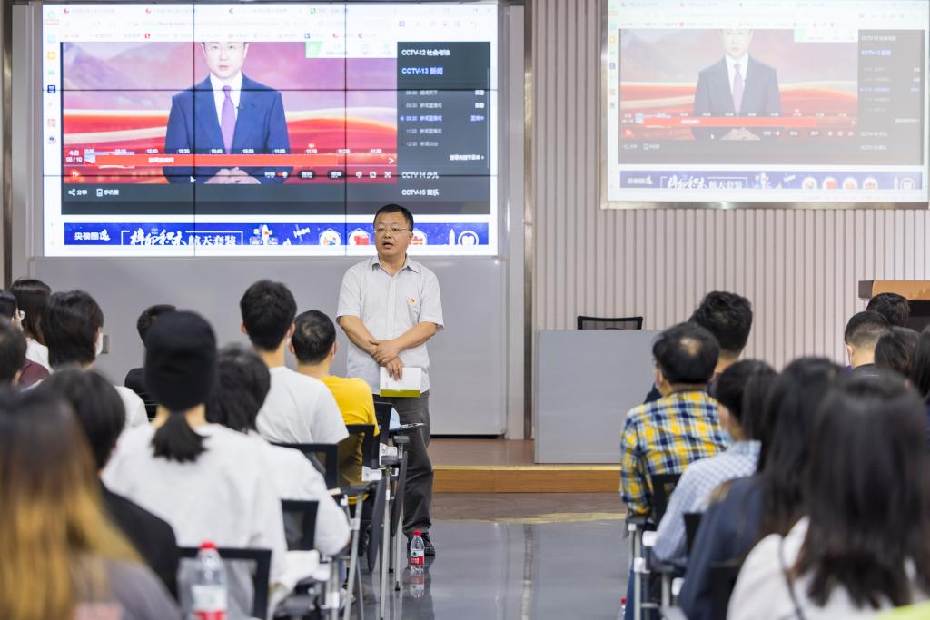 上午10点,学校组织师生在设计楼智慧教室sd201集中观看庆祝中国共产主义青年团成立100周年大会直播。学校党委副书记左益与各二级学院党政领导、团总支书记,校团委工作人员及学生骨干等一起观看了直播,共同聆听习近平总书记的重要讲话,温情回顾中国共青团的发展史。