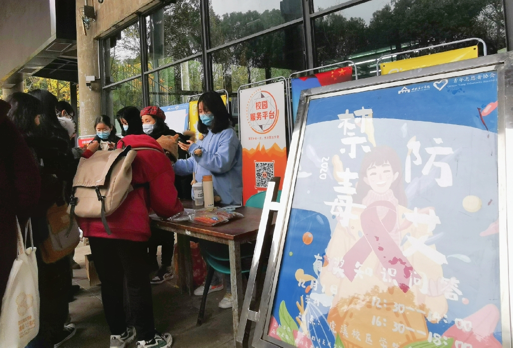 为了提高大学生的禁毒防艾意识,宣传禁毒防艾知识,由共青团四川美术学院委员会主办、四川美术学院校学生会青年志愿者协会承办的“禁毒防艾”知识竞赛,于12月1日在川美虎溪校区学生食堂门口举办。由青年志愿者协会精心筛选出40道题目,通过抽签的形式向同学们进行知识问答,现场有100多学生参与了此次活动。