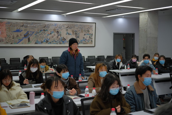 在提到“如何引导服务广大同学成长为时代新人“的时候,同学们踊跃举手发言,讲述了我校“思政+艺术”的生动实践,探讨了如何更好地做好活动宣传,如何更好地服务同学。课堂氛围活跃,学习劲头高涨。