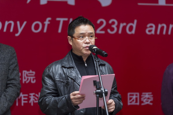 庞茂琨致开幕词。他讲到:本届本科学生作品年展围绕主题“不忘艺术初心、牢记创作使命”展开,学生作品年展开办至今,一直以鼓励和支持我校学生专业创作,推出优秀作品和人才,展现我校教学与创作互动的特点,进一步促进创作水平的提高和学术的繁荣为宗旨,是检验我院专业教学水平,展示同学们学习创作成果的重要平台。
