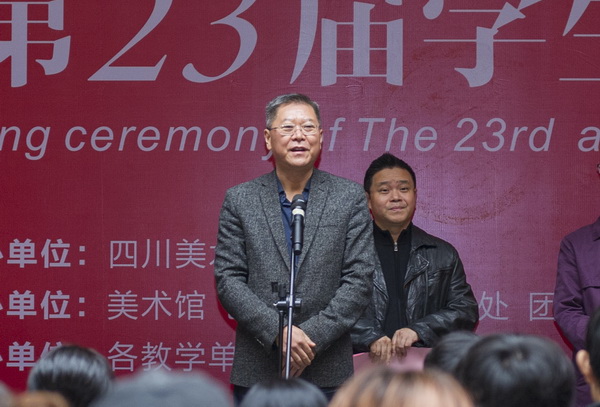 最后,党委书记黄政宣布四川美术学院第23届学生作品年展正式开幕。在场领导、师生共同参观了展览。