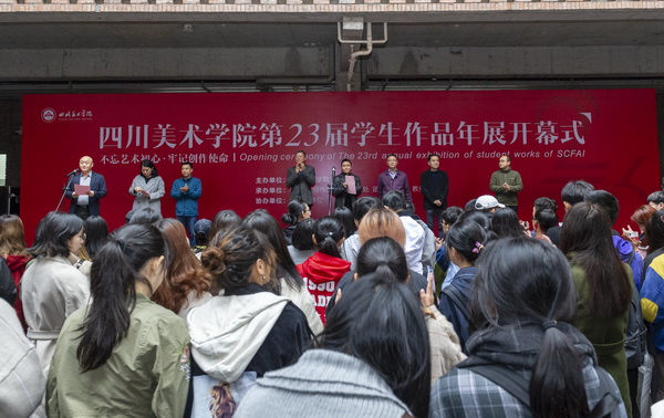 11月6日下午2点,由四川美术学院主办,美术馆、创作科研处、学生处、团委、研究生处、宣传部、教务处承办的四川美术学院第23届本科学生作品年展在虎溪公社开幕。学校党委书记黄政,党委副书记、校长庞茂琨,党委常委、副校长张杰,党委常委、纪委书记黄云出席开幕式。各职能部门、各学院领导和师生约300余人参加了开幕式。开幕式由张杰主持。