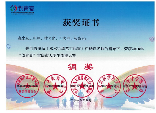 我校团委组织申报作品7件,包括大学生创业计划竞赛(即“挑战杯”中国大学生创业计划竞赛)6项,创业实践挑战赛1项。其中4件作品获奖,包括“银奖”1件,即设计艺术学院项目《亲子剧情实景主题游戏》(项目负责人:谭世鑫 团队成员:谭世鑫、尹正昊、曾彦博、陶思齐 指导老师:喻小凡);“铜奖”3件,分别是:中国画系项目《“有空间”——水墨衍生艺术中心》(项目负责人:杨玲 团队成员:杨玲、敬业佳、万秋妍 指导老师:肖志)、建筑艺术系项目《“有室”培训空间分时出租平台》(项目负责人:郑霓晴 团队成员:郑霓晴、肖逸萌、孙樱方 指导老师:李思)、手工艺术学院《水木衍漆艺工作室》(项目负责人:郝中友 团队成员:郝中友、王晓刚、钟忆雪、陈婷、杨盛宇 指导老师:杨洋)