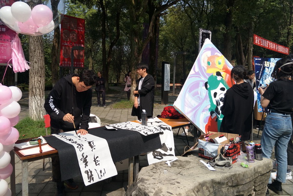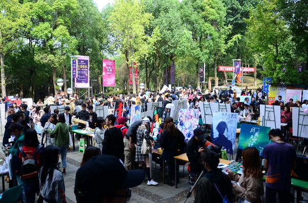 四川美术学院学生社团分专业兴趣、文艺体育、理论三大类,共有49个学生社团,覆盖了近3000名同学。开幕式现场热闹非凡,街舞社的舞蹈活力四射,散发出青春的气息;瑜伽社的表演在喧嚣的开幕式现场开辟了一处“世外桃源”;太极社、民乐社的表演让大家充分感受到了中国传统文化的魅力;话剧社对《雷雨》的演绎也让大家重温了中国经典。同时,书法社、涂鸦社、手绘社也在现场进行创作,吸引了同学们驻足观看。据统计,当天约有1200余人报名加入各类社团,社团拥有了更加丰富、坚实的后备力量。