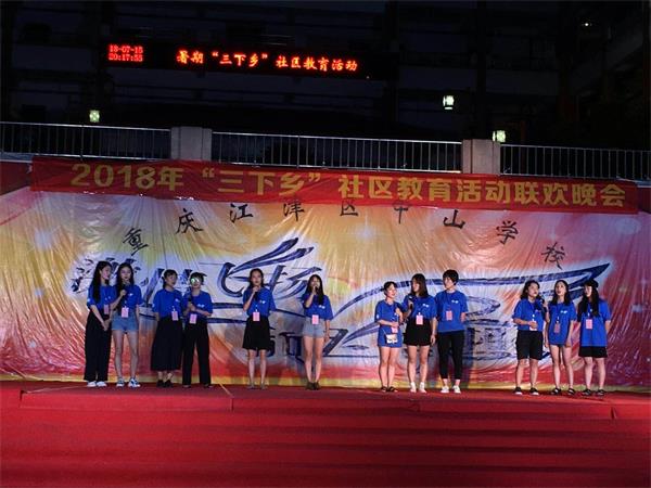 7月15日晚,川美设计艺术学院师生、中山学校、江津二中、联合重庆创想艺术学校以及江津区音舞协会,共同举办了“三下乡”社区教育活动联欢晚会。川美设计艺术学院为此准备了独唱歌曲《nothing’s gonna change my love for you》以及全体学生合唱歌曲《小幸运》。晚上8点,由中山学校学生表演的音诗节目《少年中国说》揭开晚会序幕。