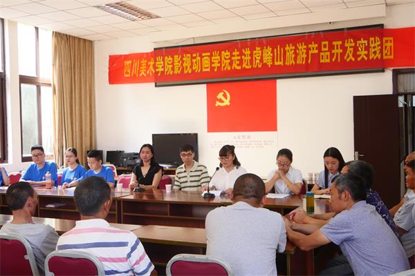 在16日上午9点举行的三下乡活动启动仪式上,沙坪坝区团委副书记石芸对四川美术学院影视动画学院实践团的到来表示热烈的欢迎,她提到,党的十九大报告提出乡村振兴战略,是实现美丽中国梦的一个重要途径,而沙坪坝区正在全力打造旅游业发展升级版,虎峰山景区也是沙坪坝区打造旅游业发展升级版的重要窗口,要加强乡村振兴,共建美丽中国。希望大学生们在切实感受虎峰山村生态旅游与绿色农业产业发展带来的新面貌之后,将虎峰山景区的美丽和虎峰山村新农村新面貌的魅力用画笔记录下来,用镜头捕捉下来,并希望借助川美大学生们所擅长的创意旅游产品开发设计的实践活动,实践活动的成果可以将虎峰山这张名片进一步宣传和推广出去,进而促进虎峰山旅游产业的发展。此次实践活动对提升沙坪坝区乡村振兴质量,创新乡村振兴方式,推进振兴进程,开拓振兴思路有着非常积极的影响和作用。