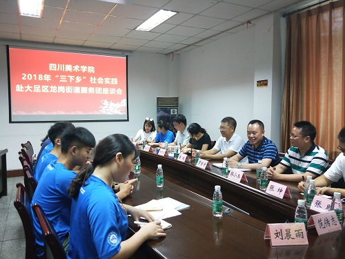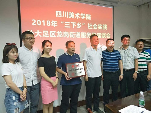 在公共艺术学院“教育关爱服务团”大足区龙岗街道实践点,黄政冒着酷暑调研川美学生“三下乡”社会实践工作。大足区副区长周虹等陪同调研。黄政先到龙岗街道学坝社区慰问了在此开展暑期“三下乡“社会实践活动的全体师生。随后在龙岗街道办事处召开了座谈会。志愿者们畅谈了本次活动的心得,一致认为这次活动十分有意义,能将自己的专业知识运用到实践中去,以此回报社会。黄政代表学校感谢龙岗街道在此次活动中对人才培养的支持,表示学校将与大足区持续深入地开展战略合作,为大足的建设发展作出贡献。龙岗街道办事处党工委书记罗登才和团区委副书记任春燕先后发言,表示希望加强校地合作,搭建新平台,开展新局面。黄政代表学校向龙岗街道学坝街社区授牌“四川美术学院社会实践基地”。