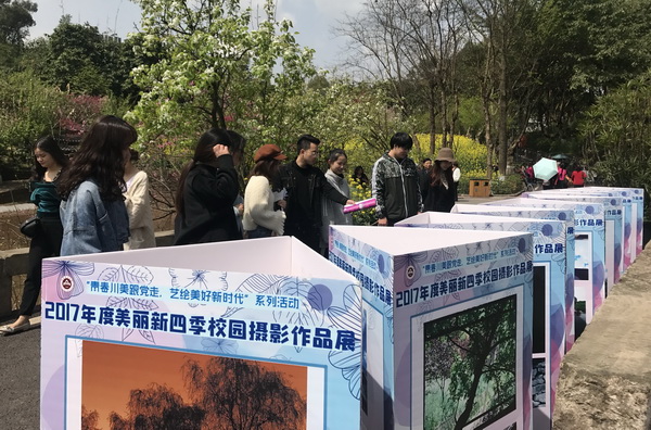 此外,由学生社团联合会承办的美丽新四季2017年校园摄影作品展在办公楼前展出,吸引了大量师生驻足参观。以上活动共吸引千余名师生、校外人士参与,表现出川美独有的地域风格与自由开放的校园性格。