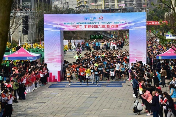 3月25日,由市委宣传部、市委教育工委、市教委、团市委、市学联联合举办的第36届大学生“青年之声·校园之春”文化艺术体育活动,在重庆三峡学院百安校区隆重举行,我校师生代表队参加了开幕式以及“三走”主题多彩马拉松活动,共有来自全市各高校的3000余名师生代表参加了开幕式。