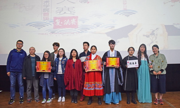 为丰富大学生校园文化生活与第二课堂,传承中华优秀传统文化,体现美院学子朝气蓬勃、崇文尚艺的精神状态,4月26日下午6点30分,由共青团四川美术学院委员会主办,四川美术学院社团联合会承办、各院系协办的四川美术学院首届校园诗词大赛在虎溪校区小剧场热烈举行。学校部分职能部门负责人、院系党总支书记、辅导员以及学生共近300人参加。
