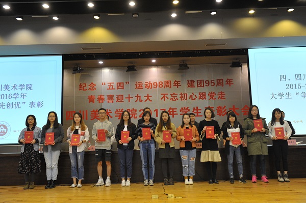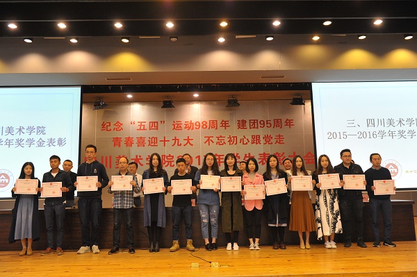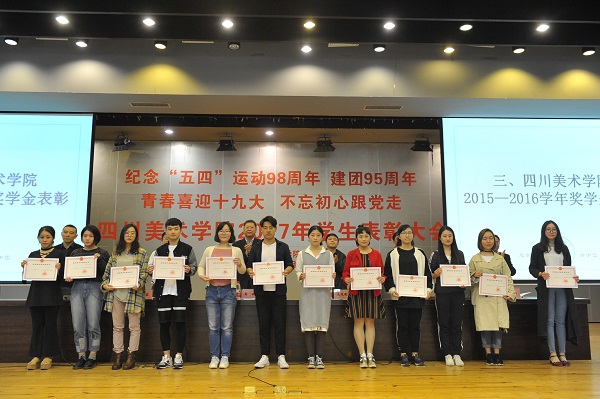 校长、党委副书记庞茂琨,纪委书记苟欣文、副校长焦兴涛、副校长彭林权及团委书记吴倩分别宣读了《四川美术学院2015-2016学年全额奖学金表彰决议》、《四川美术学院2016年度本科国家奖学金、励志奖学金表彰决定》、《四川美术学院2016年度研究生国家奖助学金表彰决定》、《四川美术学院2015-2016学年大学生“争先创优”表彰决定》、《共青团四川美术学院委员会2016年度五四表彰”决定》主席台就坐的各位领导为获奖集体、获奖学生代表颁发了荣誉证书。