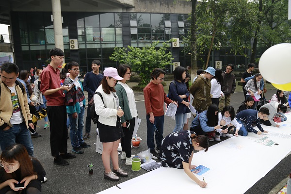 5月10日中午,“花样社团,渲彩川美”——四川美术学院2017年社团活动月在学生食堂门前开幕。校党委副书记左益,校党委宣传部、学生处、团委负责人出席开幕活动。