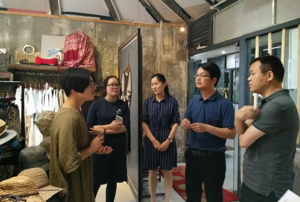 在团委、学生处的工作人员带领下,调研组参观了我校大学生文化创意微型企业园,调研了我校大学生创新创业工作开展情况,考察了一些大学生创业团队,并就其发展特色、运营方式与部分创业团队做了详细和深入的交流。