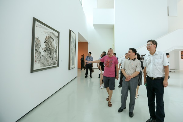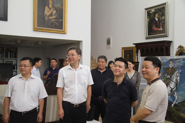 随后,傅振邦一行参观考察了虎溪公社艺术家工作室、四川美术学院美术馆及其馆藏作品展。在虎溪公社庞茂琨工作室,庞茂琨汇报展示了最新的创作作品,介绍了我校把握社会主义文艺方针、坚持以人民为中心的创作导向、支持和鼓励我校师生开展艺术创作、创作无愧于时代的优秀作品等情况。