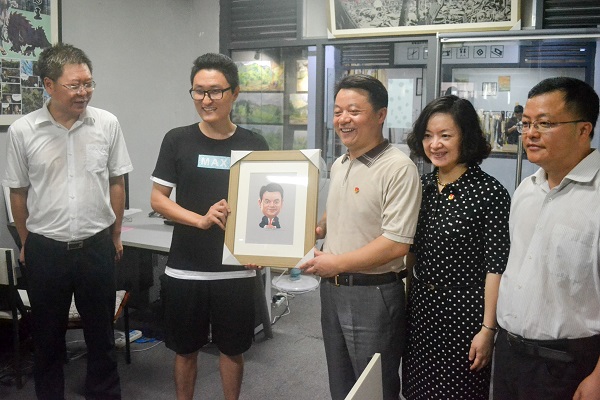 在大学生文化创意微企园,傅振邦一行到大学生创新创业指导站、小叶朴影视动画有限公司、重庆卡特文化传播有限公司、HUCHUJING服装工作室、重庆漫达文化传播有限责任公司以及学生社团创新创业孵化团队进行了参观考察。同学们向傅振邦书记展示了创业成果,汇报了创业情况,傅振邦与创业学生亲切交流,预祝同学们学以致用、创业再创佳绩。学校领导介绍了我校大学生创新创业工作情况,学校创业孵化平台建设、创业课程体系建设、创业帮扶机制等方面工作以“学业实践化 创业专业化 服务西部化”为探索,破解新时期创新创业工作难题,走出了一条高等艺术院校创新创业教育特色化发展之路,着力培养当代大学生的社会责任感、创新精神和实践能力。傅振邦对“四川美术学院大学生文化创意微型企业园”的建设以及我校近年来在大学生创新创业工作上取得的成绩给予了高度评价。
