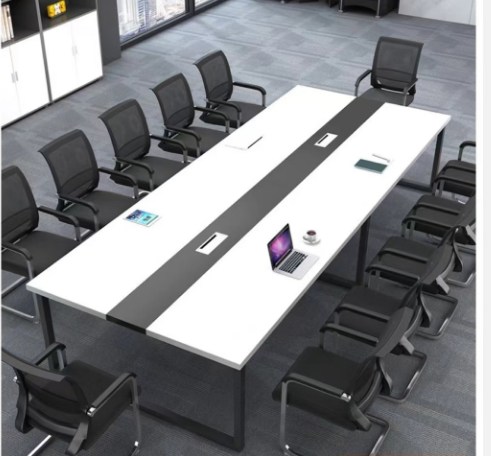 | 会议桌尺寸1.6*6米,材质说明1. 面板采用25mm厚优质三聚氰胺饰面板,符合环保要求; 2.封边:采用厚度不小于2.0mmPVC封边条,全自动封边机封边、修边,耐干热,无龟裂、无鼓泡;3、桌架采用优质型材管,表面经静电喷涂处理,稳固不摇晃。