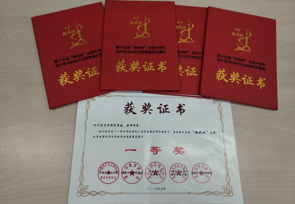 我校团委组织申报作品9件,包括哲学社会科学社会调查报告和学术论文2件,科技发明制作7件。其中获奖作品5件,一等奖获奖作品2件:公共艺术学院《一种多用途画板》(作者:刘梦茹、岳坤;指导老师:郭晏麟),设计艺术学院《儿童贴身温湿度感应预警夹》(作者:罗祥丽、王贝贝、江科;指导老师:蒋金辰)。三等奖获奖作品3件:影视动画学院《进货帮“B2B”电子商务平台》(作者:陈志铭、陈筱琦、马若芯;指导老师:王淼),设计艺术学院《公共场所开门提示器》(作者:黄蔚、崔正方;指导老师:蒋金辰);设计艺术学院《家用智能衣物晾晒系统》(作者:罗璇、梁若男;指导老师:蒋金辰)。获奖比例为56%。